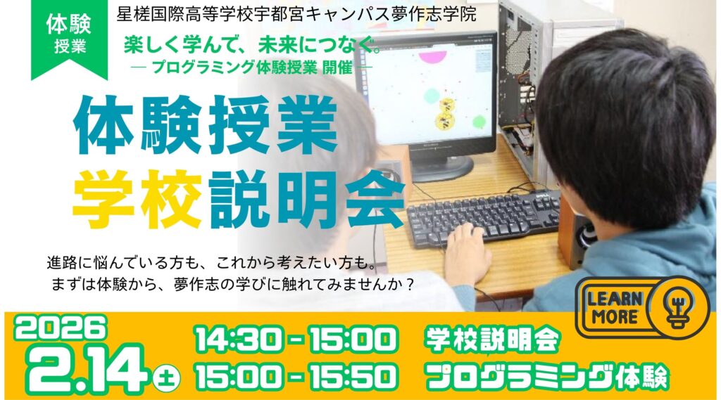 「やってみたい!」が動き出す冬。 【追加開催のお知らせ】 すでにご案内しております夢作志学院ジュニアスクール体験授業につきまして、ご好評につき 追加日程が決定しました! 🌟《追加開催日》🌟 ■ 1月10日(土) 10:0
