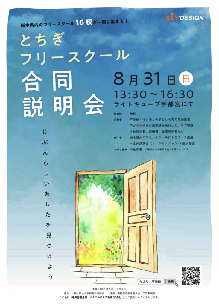 栃木県内のフリースクール 16校 が一堂に会する、年に一度の合同説明会を開催します!