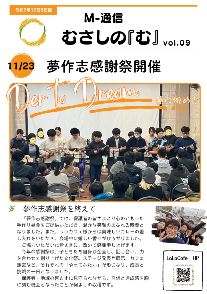 このたび、学院だより 夢作志通信「む」Vol.9 を発行いたしました。
