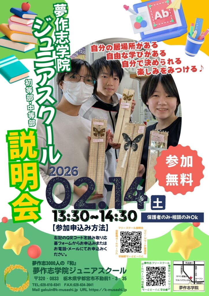 夢作志学院ジュニアスクールではフリースクール説明会を開催します。