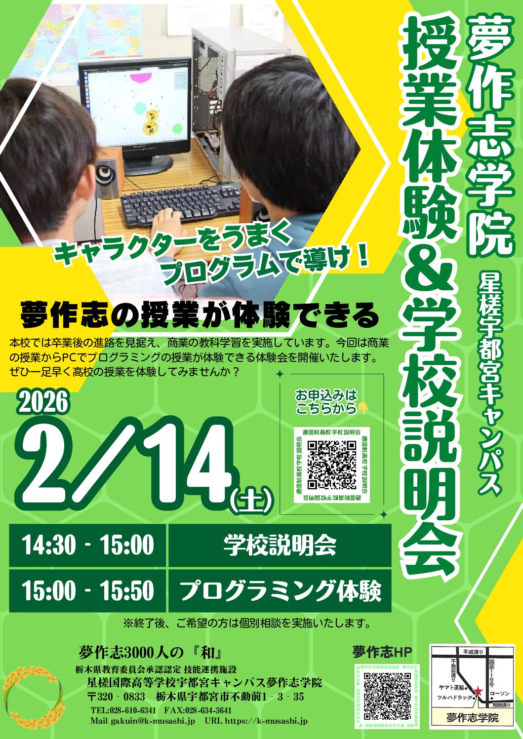 夢作志学院 通信制高校 体験授業&学校説明会を開催します。